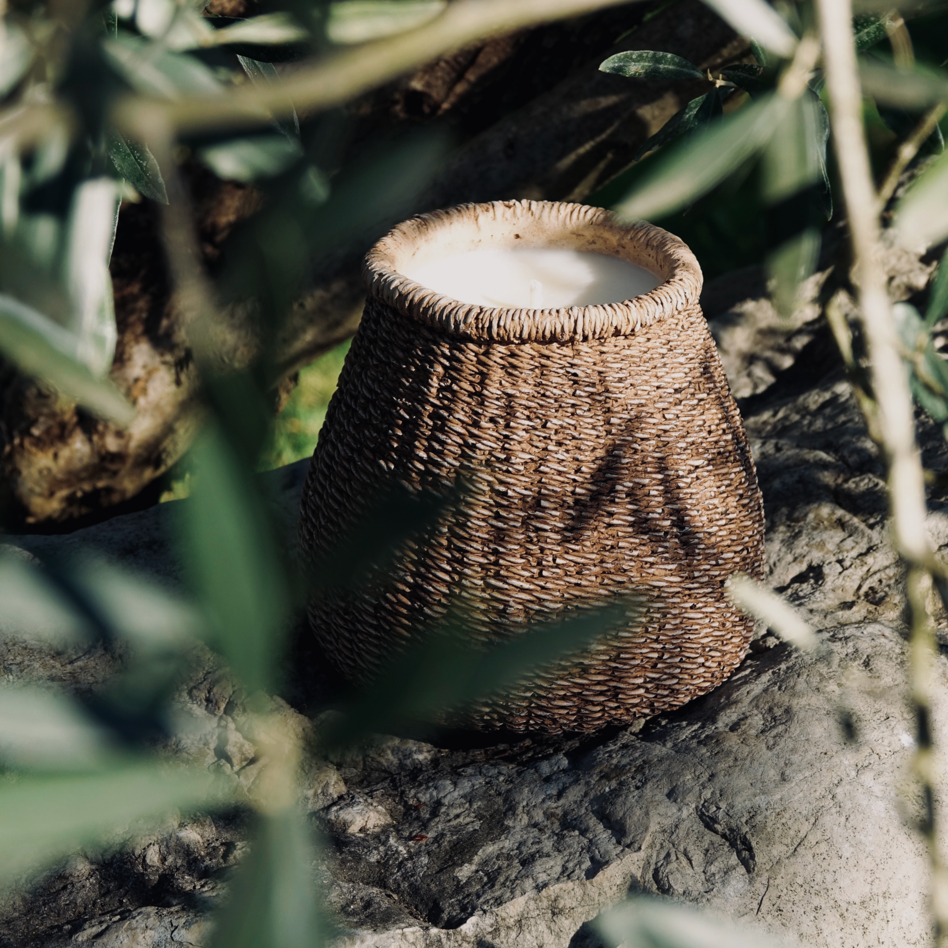 Bougie pot béton effet tressé M